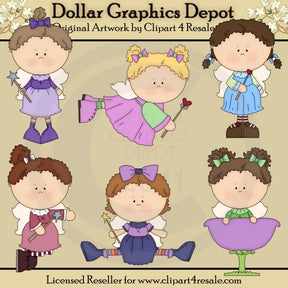Questa collezione unica nel suo genere è disponibile solo presso Digital Craft Supplies. Questo set include sei piccole fatine, che indossano graziosi vestiti, fiocchi per capelli abbinati, calzini a righe e ali d'angelo, bacchette a forma di stella e cuore e un grazioso petalo di fiore. I colori includono: viola, rosa, verde, blu, beige, malva, arancione, rosso e bianco. Questo set esclusivo contiene 6 grafiche.