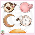 Questa collezione include un maiale, una mucca, una pecora, il sole e la luna. Questo set contiene 5 grafici.