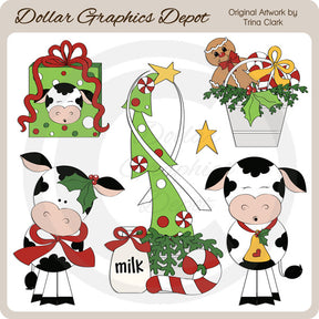 Ecco alcuni esempi di cosa puoi creare utilizzando queste grafiche "Mucche di Natale":