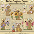 Questa collezione comprende sei adorabili orsacchiotti e coniglietti, che indossano graziosi fiocchi floreali, a cuore e a quadretti, rose rosa e lavanda, girasoli dorati, iris viola, gladioli rosa, erba verde, un vaso di fiori di argilla con fiori rosa, un uccello blu, un alveare giallo e graziosi cuori rosa. Questo set contiene 6 grafici.
