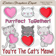 Questa collezione include adorabili gattini di San Valentino, cuori smerlati rossi e rosa e due grafiche word art di San Valentino: "Purrfect Together" e "You're The Cat's Meow". Questo set contiene 8 grafici.