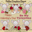 Questa collezione comprende sei adorabili topolini di San Valentino, cuori di San Valentino smerlati, tartufi di cioccolato, un cesto intrecciato pieno di rose rosse, un biglietto di San Valentino in una busta, una bella rosa rosa, graziose rose rosse, una scatola di cioccolatini a forma di cuore e due parole di San Valentino. grafica artistica - "Buon San Valentino" e "Be My Valentine". Questo set contiene 8 grafici.