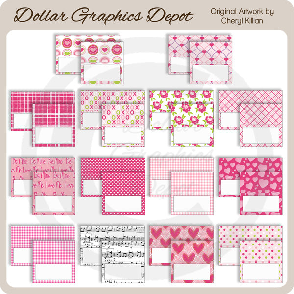 Questa ENORME collezione include quattordici 6,5" x 4" (6,5" x 2" quando piegati) e quattordici 4" x 4" (4" x 2" quando piegati), toppers per borse di San Valentino, a cuore, linea ondulata, "XOXO" word art, floreale, plaid, word art "Be Mine and Love Me", percalle, note musicali e motivi a pois. NOTA BENE: questo set si coordina con le collezioni "Set di segnalibri Super Valentine", " Porta cialde caffè Valentine", "Etichette regalo Valentine", "Involucri mini barrette di cioccolato Valentine" e "Etichette smerlate Valentine" . Questo set contiene 28 stampabili.