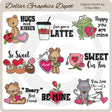 Questa collezione comprende nove grafiche di San Valentino splendidamente dipinte a mano con parole artistiche coordinate di San Valentino: un orsetto con rose rosse, un cuore rosa smerlato e parole artistiche "Abbracci e baci", un latte macchiato con una manica a forma di cuore e " Love You A Latte", una piccola rana con un cuore rosa e la scritta "Hoppy You Are Mine", tartufi di cioccolato con rose rosa e rosse, un cuore rosso e la scritta "So Sweet", un orsetto con una rosa rosa, un cuore rosa smerlato e la scritta "Beary Sweet", una tazza da tè a cuore dipinta con una bustina di tè, una rosa rosa e la scritta "Sweet On You", un orsetto con cuori rosa e la scritta "Beary Best Friend" "parola artistica, un cuore rosso smerlato con una rosa rossa e la scritta "Be Mine" e un gattino con un colletto a forma di cuore, cuori rosa, rose rosa, un biglietto di San Valentino in una busta e "You Are The" Miao del gatto" parola d'arte. Questo set contiene 9 grafici.