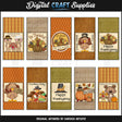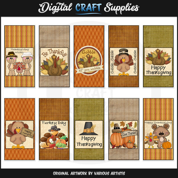 Questa collezione unica nel suo genere è disponibile solo presso Digital Craft Supplies. Questa collezione include dieci mini involucri di barrette di cioccolato "Ringraziamento". I disegni includono: sfondi fantasia in bellissimi colori autunnali, tacchini del Ringraziamento, cappelli da pellegrino, zucche autunnali, teneri orsetti, un cartello "Buon Ringraziamento", foglie autunnali colorate, ghiande, spighe di grano, frutti autunnali e un "Ringraziamento". cartello. Le parole artistiche includono: "Desideri del Ringraziamento", "Sii grato", "Gobble Til' You Wobble", "Gobble...Gobble", "Happy Thanksgiving" e "Turkey Day". Questo set esclusivo contiene 10 stampabili individuali e 1 pagina "Pronta per la stampa" (non mostrata nell'anteprima).