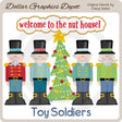 Questa collezione include quattro schiaccianoci di Natale, un albero di Natale decorato con una stella d'oro in cima e due grafiche di word art natalizie: "Welcome To The Nuthouse" e "Toy Soldiers". Questo set contiene 7 grafici.