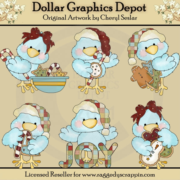 Questa collezione comprende sei dolci uccellini blu, graziosi fiocchi per capelli a pois, cappelli di Babbo Natale patchwork, una ciotola piena di biscotti natalizi, bastoncini di zucchero a strisce, biscotti natalizi decorati a forma di stelle, cuori, omino di pan di zenzero, albero di Natale, pupazzo di neve, bastoncino di zucchero, tradizionale tondo e scritta "JOY" con riempimento patchwork. Questo set contiene 6 grafici.