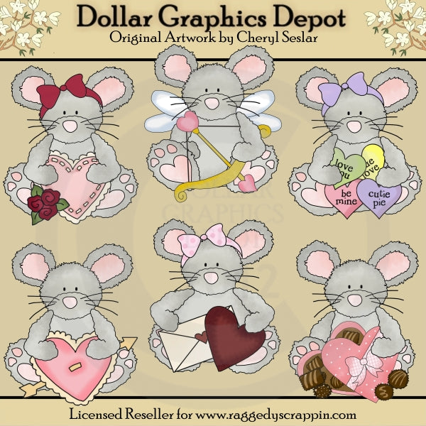 Ecco alcuni esempi di cosa puoi creare utilizzando la grafica "Valentine Mice 1":
