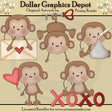 Questa collezione include adorabili scimmiette di San Valentino, un biglietto di San Valentino in una busta, una chiave a forma di cuore, un bacio di cioccolato, un lecca-lecca a forma di cuore e la scritta "XOXO". Questo set contiene 5 grafici.