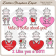 Questa collezione include adorabili robot di San Valentino, cuori smerlati rossi e rosa, un biglietto di San Valentino in una busta, rose rosa e rosse, un grande cuore rosa con la scritta "Be My Valentine", un grande cuore rosso con la scritta "Buon San Valentino" , un grande cuore rosa e rosso (lasciato vuoto per la personalizzazione) e due grafiche word art di San Valentino: "Nuts And Bolts About You" e "I Like You A Bot". Questo set contiene 10 grafici.