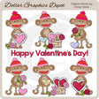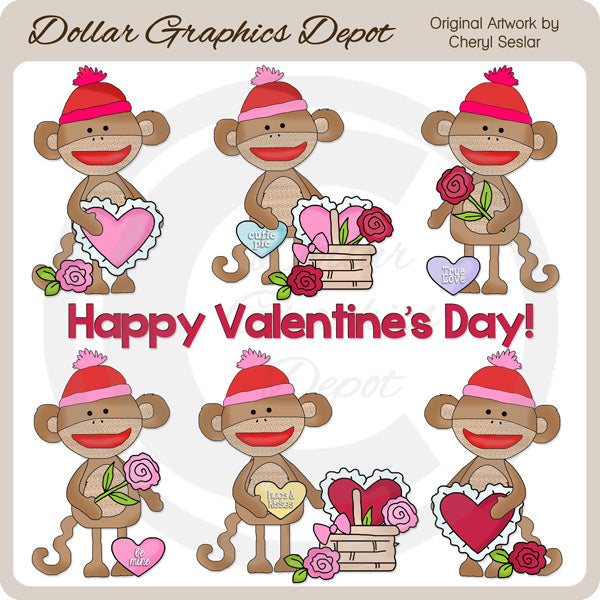 Questa collezione unica nel suo genere è disponibile solo presso Digital Craft Supplies. Questo set include adorabili scimmie calzino di San Valentino con cappelli lavorati a maglia, cuori smerlati rossi e rosa, rose rosse e rosa, cestini intrecciati con fiocchetti, cuori di conversazione e una grafica word art "Buon San Valentino". Questo set esclusivo contiene 7 grafiche.