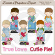 Questa collezione unica nel suo genere è disponibile solo presso Digital Craft Supplies. Questa collezione include adorabili ragazzi di San Valentino, che indossano tute con toppe e magliette colorate, rose rosse e rosa, cuori di conversazione, cestini intrecciati, cuori smerlati rossi e rosa e due grafiche word art di San Valentino: "True Love" e "Cutie Pie". ." Questo set esclusivo contiene 8 grafiche.