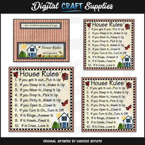 Questa collezione unica nel suo genere è disponibile solo presso Digital Craft Supplies. Questa collezione include un blocco di vetro standard stampabile (adatto a un blocco di vetro da 8" x 8"), un mini blocco di vetro stampabile (adatto a un blocco di vetro mini da 6" x 6"), una piastrella di ceramica stampabile (adatto a un blocco di vetro da 4" x 4") piastrelle di ceramica) e un topper per sacchetti di piastrelle di ceramica (ideale per esporre le piastrelle di ceramica decorate da 4" x 4" durante fiere dell'artigianato, mostre di artigianato e negozi di articoli da regalo). Queste immagini raffigurano una casa con cespugli, rocce, sole, coccinelle e dieci "regole della casa". Questo set esclusivo contiene 4 stampabili individuali e 4 pagine "Pronte per la stampa" (non mostrate nell'anteprima).