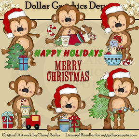 Ecco alcuni esempi di cosa puoi creare utilizzando la grafica "Merry Christmas Monkeys":