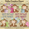 Questa collezione include sei adorabili scimmie di compleanno con cappelli da festa, palloncini di compleanno, regali di compleanno incartati con graziosi fiocchi, coriandoli per la festa, numeri di compleanno 2, 3 e 4 e due grafiche word art "Buon compleanno scimmietta". Questo set contiene 8 grafici.