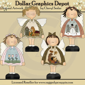 Ecco alcuni esempi di cosa puoi creare utilizzando la grafica "Seasonal Angels":