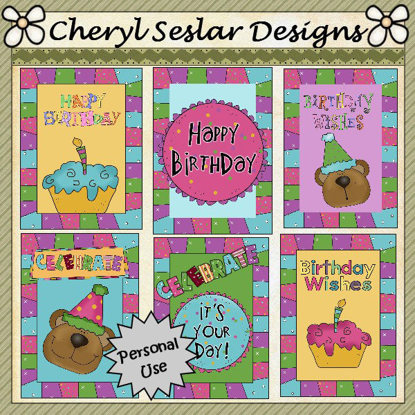 Fronti dei biglietti per la celebrazione del compleanno... Set di 6