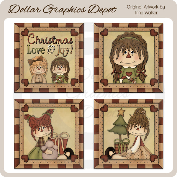 Questa raccolta include quattro blocchi stampabili da 8" x 8", raffiguranti graziose bambine di Natale, parole artistiche "Christmas Love & Joy", bastoncini di zucchero, regali di Natale incartati, un topo di peluche e un albero di Natale. NOTA BENE: Questo set si coordina con "Christmas Girls 4 - Clip Art", "Christmas Girls 4 - Cards", "Christmas Girls 4 - Tags", " Christmas Girls 4 - Cupcake Wrappers", "Christmas Girls 4-5 - Scrap Papers", "Christmas Girls 5 - Clip Art", "Christmas Girls 5 - Cards", "Christmas Girls 5 - Tags" e "Christmas Girls 5 - Cupcake Wrappers" . Questo set contiene 4 blocchi stampabili.