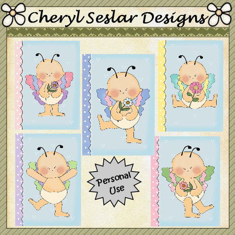 Frontali di biglietti per bambini con farfalla...Set di 5
