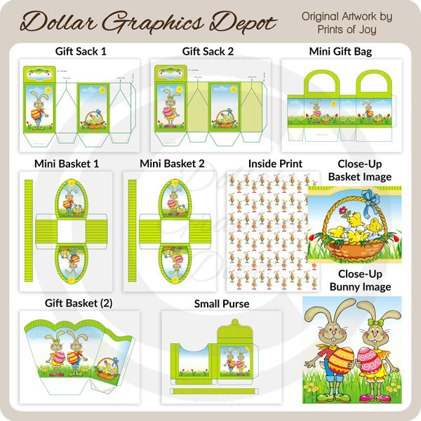 Questa ampia collezione comprende nove fogli stampabili pasquali da 8,5 x 11 pollici, con le seguenti creazioni stampabili: 2 sacchi regalo, 1 mini sacchetto regalo con manici, 2 mini cestini con manici, 1 cesto regalo - tre stampabili (due mostrati), incluso l'interno stampa e 1 piccola borsa con manici. BONUS: Questa raccolta include anche un E-Book e alcuni fogli di istruzioni (con foto). Assicurati di leggere le Condizioni d'Uso "Raccolte stampabili" relative agli e-book. NOTA BENE: le immagini in primo piano sono solo a scopo illustrativo. Riceverai 9 fogli stampabili, per un totale di 7 diverse creazioni.