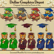 Questa ampia collezione comprende sei orsetti da laurea con abiti da laurea, berretti e diplomi, quattro gufi da laurea con berretti da laurea, gilet e matite e tre berretti da laurea. I colori includono: rosso, blu, verde, nero e oro. Questo set contiene 13 grafici.