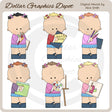 Questa collezione comprende bambine studentesse d'arte con tubi di vernice, pennelli, carta da disegno, una bottiglia di colla, cartoncino colorato, un quaderno da disegno, matite colorate, un blocco note, un cavalletto da disegno e una tavolozza da pittura con pennello. Questo set contiene 6 grafici.