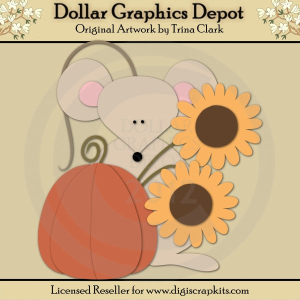 Questa raccolta include file di taglio che possono essere utilizzati per creare questo adorabile progetto artigianale di topi autunnali (mostrato "finito" in anteprima): un simpatico topolino, una zucca autunnale e graziosi girasoli.