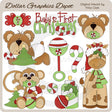 Questa collezione include i primi animali natalizi del bambino: orsetti, una scimmietta e una giraffa, un cappello da Babbo Natale, una sciarpa invernale, pannolini, ciucci, un sonaglio, un biberon con decorazioni natalizie, alberi di Natale, caramelle bastoncini, un ornamento natalizio, una caramella alla menta piperita e una grafica word art "Il primo Natale del bambino". NOTA BENE: questo set si coordina con le collezioni "Primo Natale del bambino - Ragazze" e "Primo Natale del bambino - Documenti di scarto" . Questo set contiene 10 grafici.