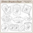 Questa collezione comprende un guanto da forno, un contenitore per lo zucchero, una presina, cupcake glassati, una torta di ciliegie, ciliegie, una zuccheriera, una spargisale e pepe e un contenitore per la farina. Questo set contiene 9 timbri digitali.