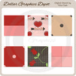 Questa collezione include sei tessere di sfondo San Valentino da 1" x 1" con pois (2), percalli, rose, strisce e cuori con frecce e XOXOXO. NOTA BENE: questo set si coordina con le collezioni "Be My Valentine 1 - Clip Art" e "Be My Valentine 1 - Scrap Papers" . Questo set contiene 6 tessere di sfondo.