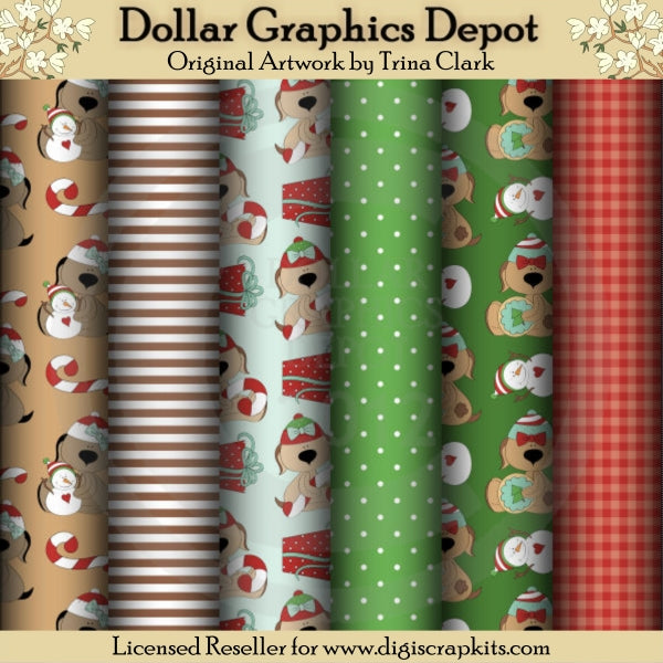 Ecco alcuni esempi di cosa puoi creare utilizzando la collezione "Yuletide Doggies 1 - Scrap Papers":