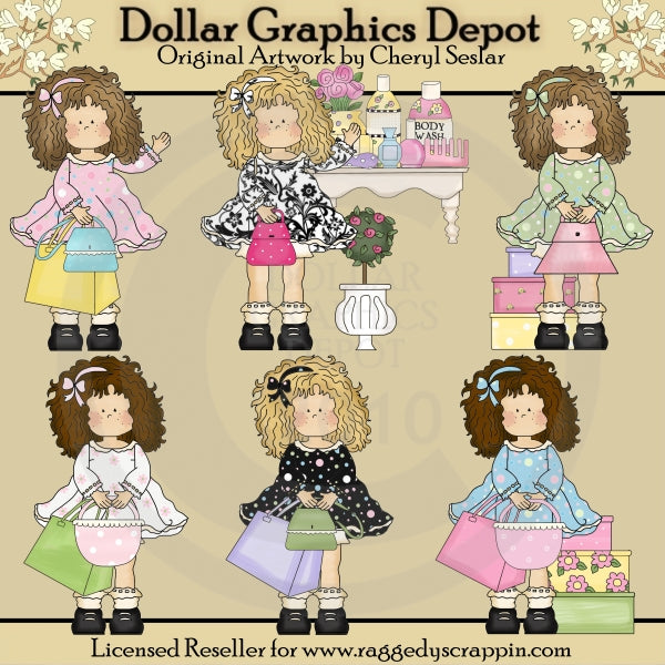 Questa collezione unica nel suo genere è disponibile solo presso Digital Craft Supplies. Questo set comprende sei bambine, che indossano graziosi vestiti a fiori e a pois e fiocchi per capelli abbinati, in rosa, blu, verde, nero, bianco e giallo, graziosi portamonete, graziose cappelliere boutique, borse per la spesa boutique, una bella arte topiaria, uno scaffale da boutique, una lozione, un bagnoschiuma, un sapone, un profumo, uno smalto per unghie, una spazzola, un pettine, un vaso dipinto a pois e graziosi fiori rosa. Questo set esclusivo contiene 6 grafiche.