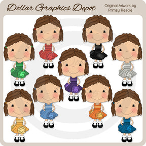Questa collezione comprende nove cheerleader, con capelli castani e occhi castani, ciascuna con pompon e indossando abiti da cheerleader, in diversi colori. Questo set contiene 9 grafici.