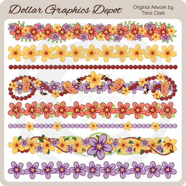 Questa collezione comprende otto bellissimi bordi: quattro bordi floreali colorati, un bordo con perline, due bordi con perline e fiori e un bordo floreale, con perline, farfalla e calabrone. NOTA BENE: questo set si coordina con le collezioni "May Days - Borders 2", "May Days - Clip Art", "May Days - Srap Papers" e "May Days - Background Tiles" . Questo set contiene 8 grafici.