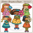 Questa collezione comprende adorabili bambine, con graziosi vestiti e fasce abbinate, e fiori primaverili colorati. Questo set contiene 5 grafici.