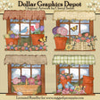 Questa collezione comprende quattro bellissime finestre primaverili con mantovane scozzesi e a quadretti, fiori primaverili colorati, cestini intrecciati pieni di fiori primaverili, vasi di fiori in argilla pieni di fiori primaverili, farfalle, calabroni, piccoli pettirossi e una pala. Questo set contiene 4 grafici.
