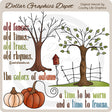 Questa raccolta include un grazioso albero con foglie verdi, un grazioso albero con rami innevati, un pezzo di erba con una staccionata e una casetta per gli uccelli dipinta, zucche autunnali e sei grafica word art: 3 in testo colorato e 3 in testo nero (non mostrato) - "I colori dell'autunno", "Un tempo per stare al caldo e un tempo per congelare" e "Vecchie recinzioni. Vecchi tempi. Vecchi alberi. Vecchie rime". Nota: l'ultima parola grafica è protetta da copyright di Country Life Graphics e sarà presente un contrassegno di copyright. Questo set contiene 10 grafici.