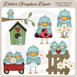 Questa collezione comprende adorabili uccellini blu primaverili, un ramo di un albero, una casetta per gli uccelli, una coccinella, un carro rosso, una staccionata e graziose margherite primaverili. Questo set contiene 5 grafici.