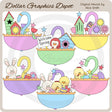 Questa collezione unica nel suo genere è disponibile solo presso Digital Craft Supplies. Questo set include ombrelli colorati primaverili e pasquali con casette per gli uccelli dipinte, fiori primaverili, un uccellino, una farfalla, stelle primaverili, un cartello "Benvenuta primavera", uova di Pasqua dipinte, coniglietti pasquali, galline e un pulcino. Questo set esclusivo contiene 6 grafiche.