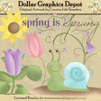 Questa collezione include un'adorabile lumachina, un girasole, un tulipano rosa, un tulipano color lavanda, un grazioso accento floreale a scorrimento e una grafica word art "Spring Is Sprung". Questo set contiene 6 grafici.