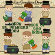 Questa collezione comprende sei adorabili ragazzini, che indossano pantaloncini e magliette fantasia, cappelli a cilindro, quadrifogli, bandiere irlandesi, pentole d'oro e due grafiche word art: "Happy St. Patrick's Day" e "Luck Of The Irish". Questo set contiene 8 grafici.