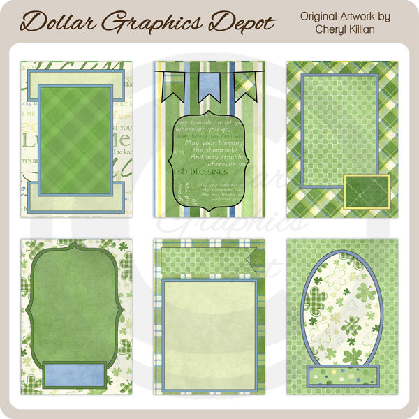 Questa collezione comprende sei biglietti frontali da 5" x 7" per il giorno di San Patrizio, con graziosi motivi a quadrifoglio, a quadri, a righe, a quadretti, a pois, trapuntati e con parole artistiche del giorno di San Patrizio. NOTA BENE: questo set si coordina con la collezione "Toppers per borse del giorno di San Patrizio" . Questo set contiene 6 carte.