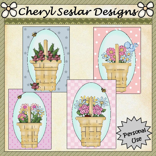 Fronti in cartoncino per cesto di fiori...Set di 4