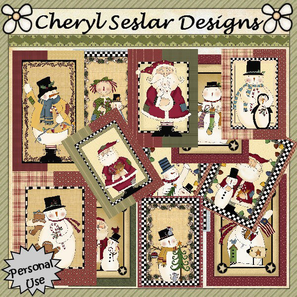 Fronti di biglietti invernali di arte popolare... Set di 12