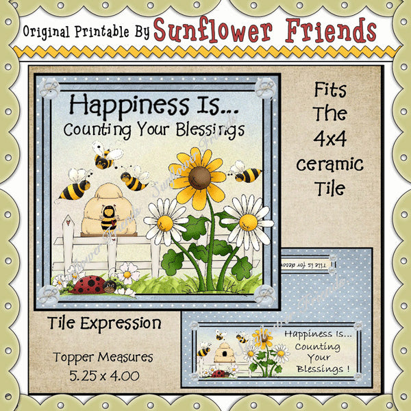 "La felicità è... contare le tue benedizioni" (piastrella 4x4)