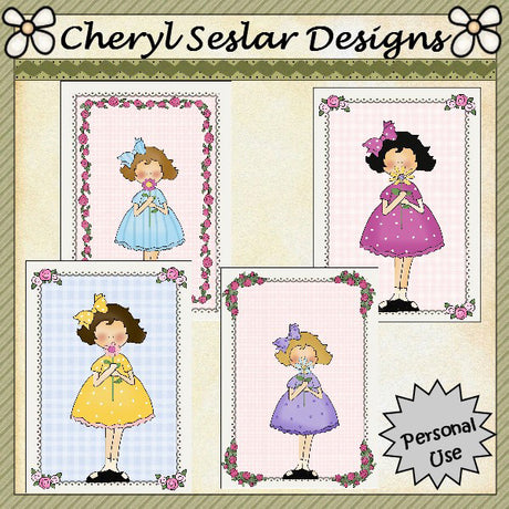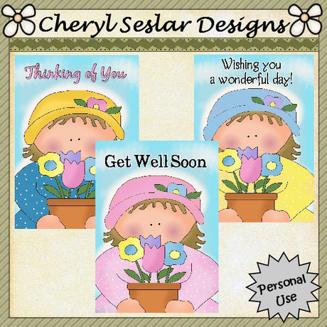 Prezzo normale $1.10 USDPrezzo unitario /Non disponibileFronti di biglietti per ragazze con vaso di fiori... Set di 3
