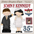Questa collezione include il presidente John F. Kennedy, sua moglie Jacqueline Kennedy, un'insegna americana con la scritta "Kennedy For President", la copertina di "Time Magazine", raffigurante JFK, e due parole grafiche: "John F. Kennedy " e "35esimo Presidente". Questo set contiene 6 grafici.