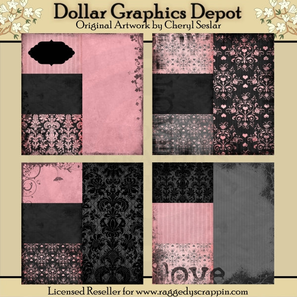 Questa collezione comprende quattro bellissimi fogli di scarto "sposa arrossita" da 12"x12", in rosa, nero e carbone. Questo set contiene 4 fogli di scarto.