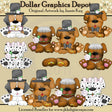 Questa collezione comprende dieci cuccioli di cane "festa di matrimonio": un testimone con pelliccia marrone, nera e bianca, un cappello a cilindro con un bel fiore e un piccolo cuscino con fedi nuziali dorate, una damigella d'onore con macchie bianche e nere, graziosi fiocchi per capelli e una rosa rosa, uno sposo con macchie marrone chiaro e marroni, un cappello a cilindro con un bel fiore, un papillon e un anello nuziale d'oro, una sposa con pelliccia marrone, un grazioso velo da sposa di perle, collana di perle, orecchini di perle , una bella rosa rosa e una fede nuziale con diamante, le zampe della sposa e dello sposo con le fedi nuziali, i cuccioli della sposa e dello sposo insieme e un testimone, damigella d'onore, sposa e sposo tutti insieme. Questo set contiene 7 grafici.