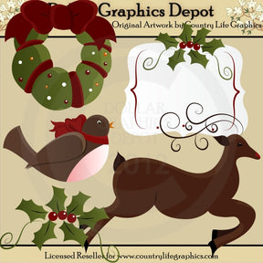 Questa collezione include una ghirlanda natalizia decorata con un grazioso fiocco rosso, un uccellino marrone e bianco con un fiocchetto rosso, un accento di foglia di bacca di agrifoglio, una bellissima renna con corna vorticose e una graziosa etichetta regalo di Natale con accento di foglia di bacca di agrifoglio. Questo set contiene 5 grafici.